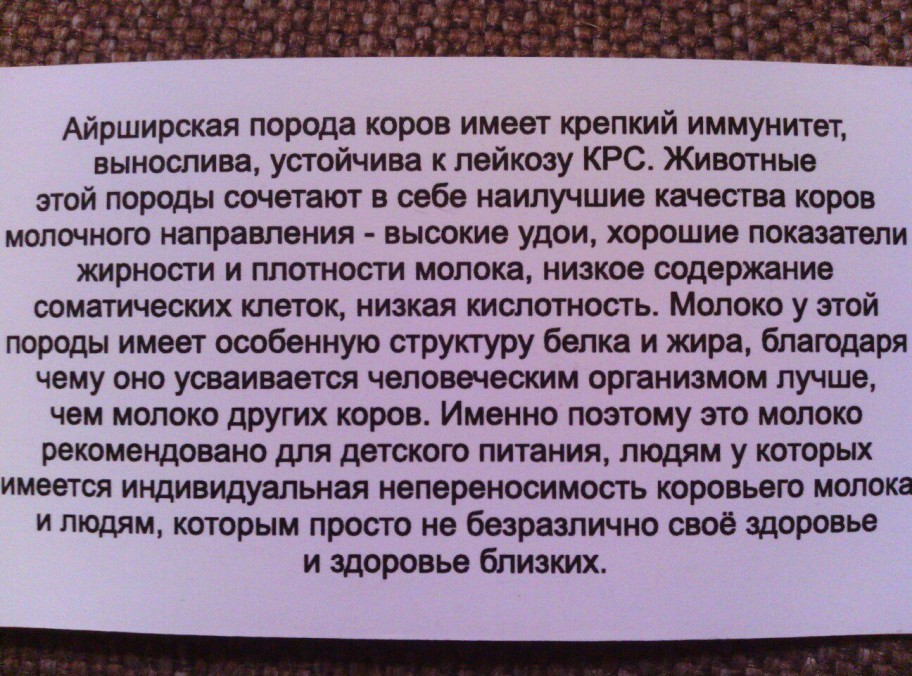 Молоко от коров айрширской породы