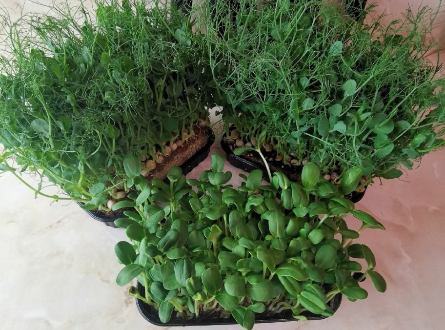 Микрозелень горошка, продаётся растущим в боксе 18см на 11 см.