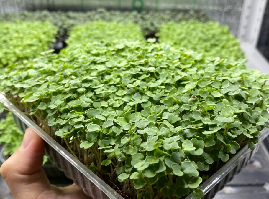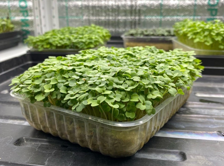 Микрозелень рукколы в растущем боксе размером 11см на 18см