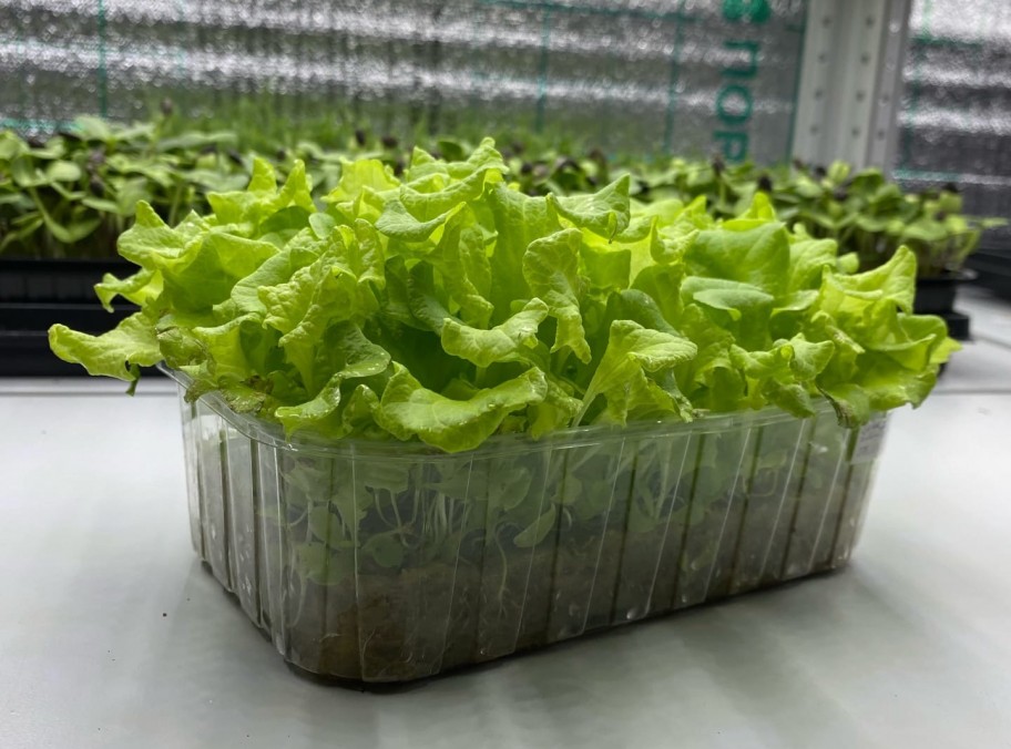 Микрозелень Салата Лоло Бионда в растущем виде в боксе 12см на 17см