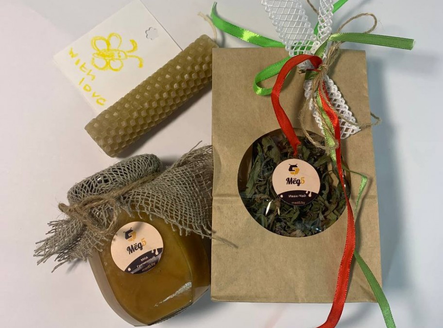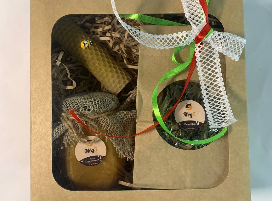 В наборе: 250 гр меда(на выбор спрашивайте наличие), свеча восковая, Иван-чай 30 гр, магнит