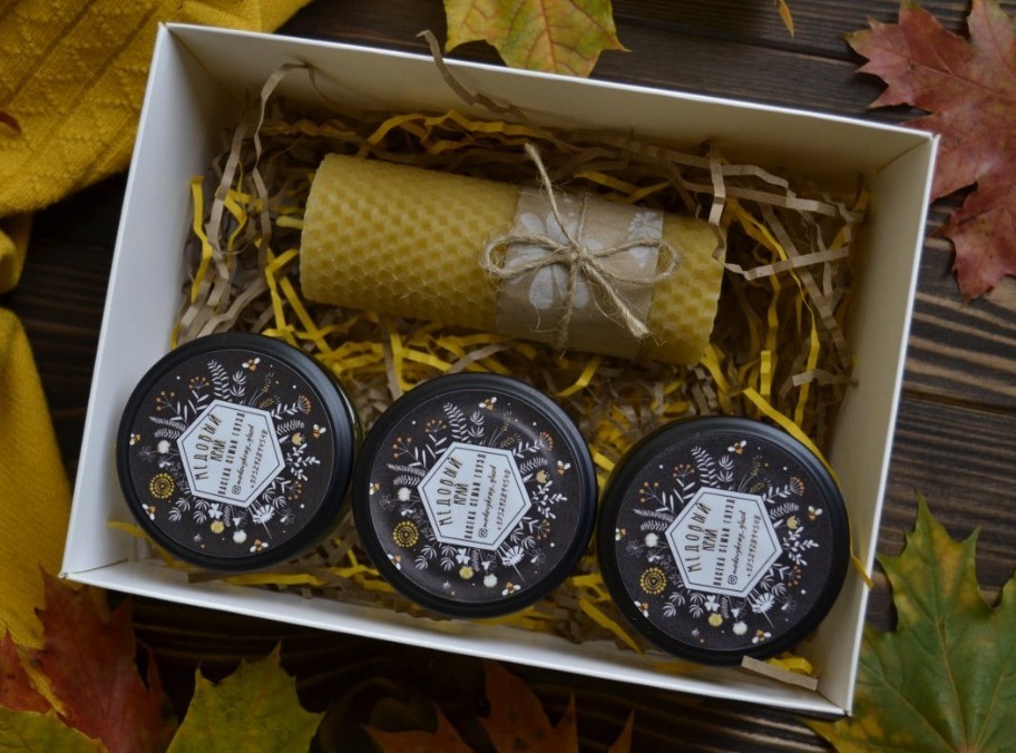 Цена указана за набор с 3 видами мёда по 100мл (160гр) и свечкой 13*5см.