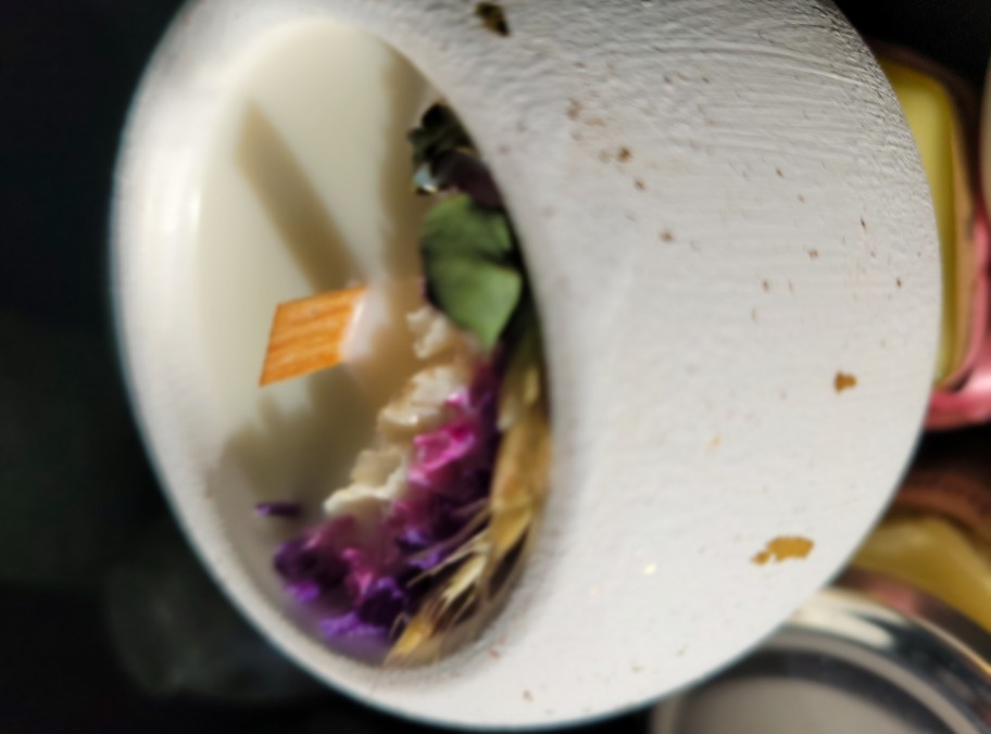 Свечи декорированы натуральными сухими цветами и травами, которые при горении могут быстро воспламеняться и тут же затухать. И хотя свечи не являются пожароопасными, оставлять их без присмотра не рекомендуется.
