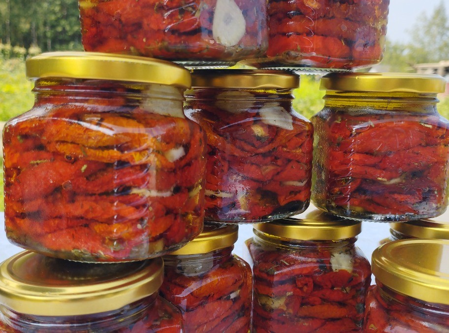Состав: домашние помидоры, чеснок, прованские травы, смесь оливкового и подсолнечного масла, соль, сахар, уксус 6%